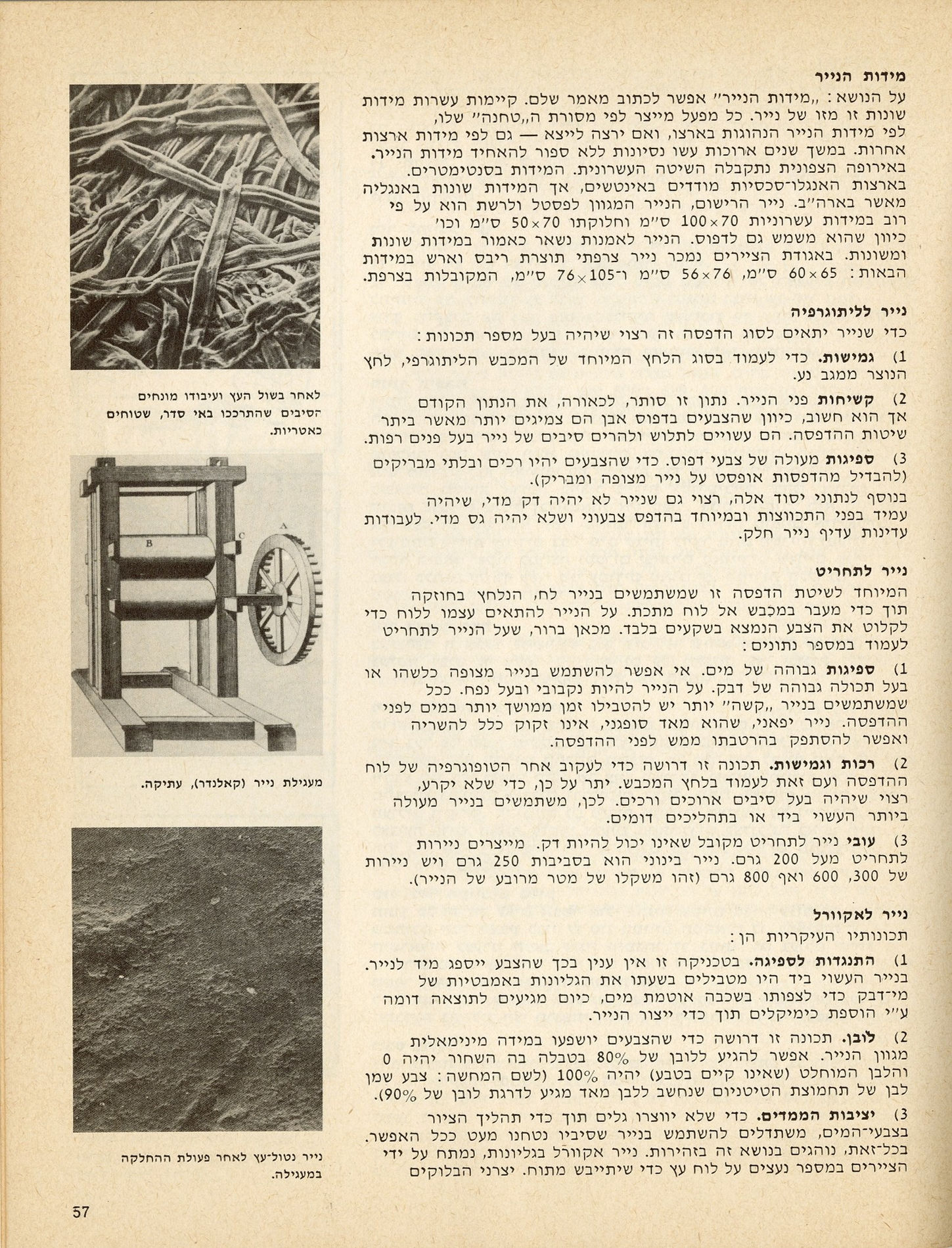 כדי לענות על שאלות אלה נבחן את תולדות ותהליכי הייצור של הנייר ואת התכונות והשימושים של סוגי הנייר השונים, באמנות ובתעשיה. נבדוק את המיפרטים הדרושים לכל סוג עבודה אמנותית כדי לדעת לבחור בנייר היותר מתאים למטרתו.
